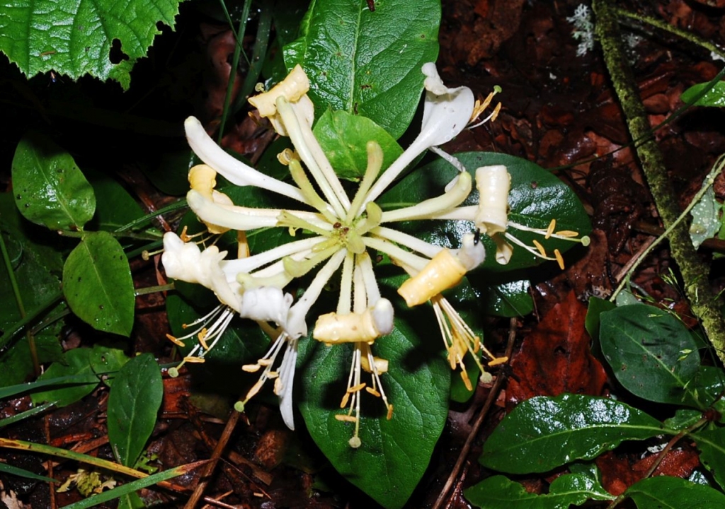 Ik ben een wilde kamperfoelie. 's Avonds en 's nachts verspreiden mijn roomwitte tot geelachtige bloemen een sterke geur. Nachtvlinders zijn gek op mij. Mijn bladeren staan tegenover elkaar, zijn gesteeld en ovaal van vorm. Als ik oud ben verhouten mijn stengels.